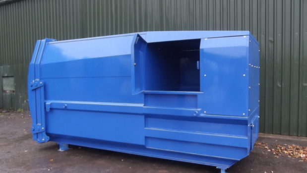 Loading doors located to both sides and a large front/top loading door suitable for tipping skips.